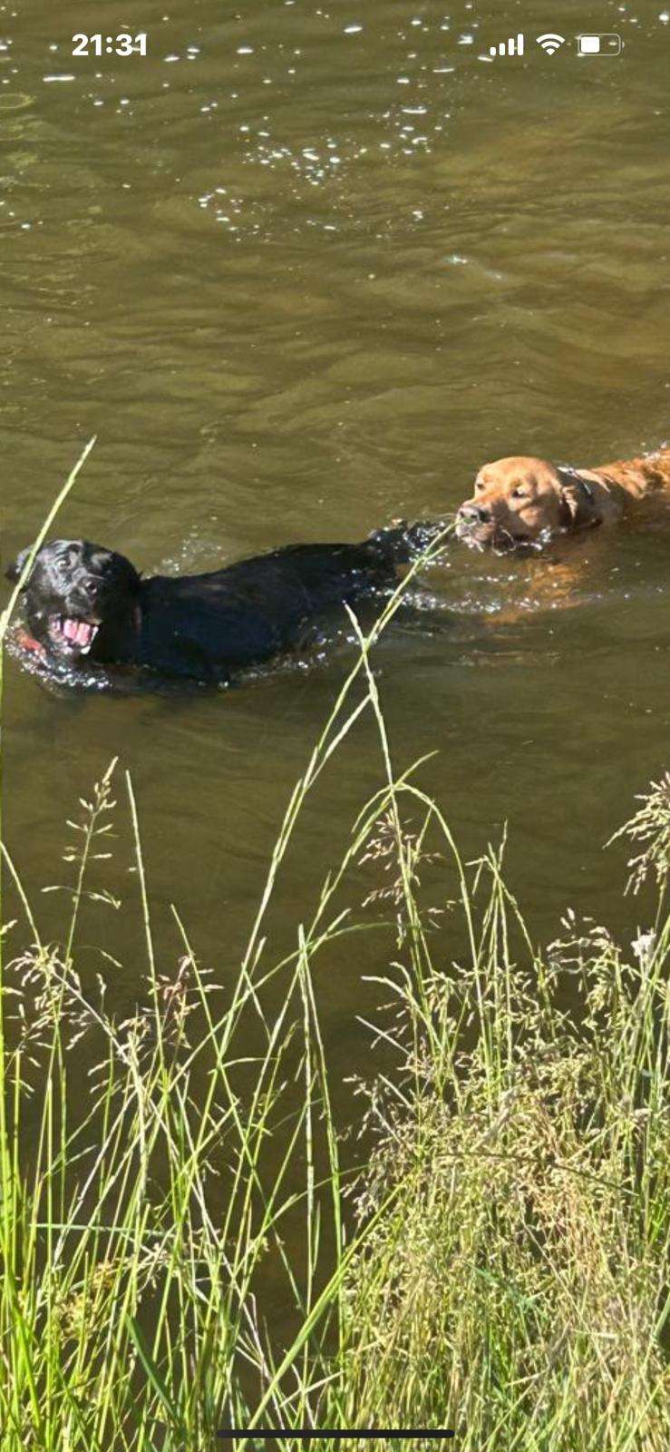 Nach dem Schwimmen im Holpebach sind wir 2 total erschöpft.
